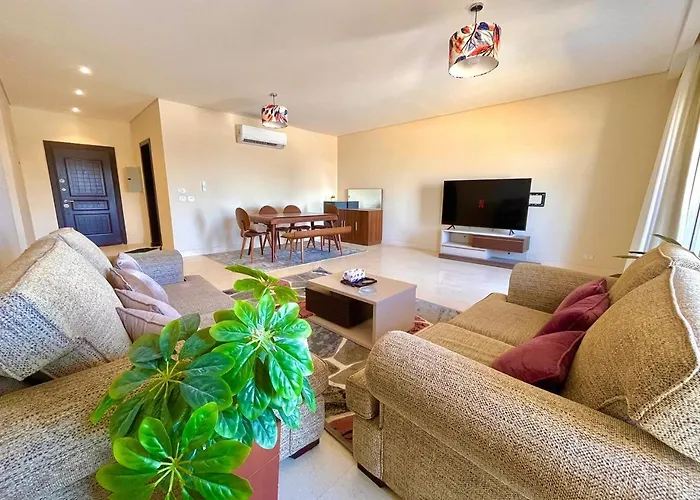 Disfruta de tus vacaciones en El Cairo en A Space Of Livivng - 90 Avenue Compound El El Cairo, un apartamento de 170 m². Ideal para quienes buscan una experiencia auténtica, está situado a 18 minutos a pie de la Universidad Americana en El Cairo y a unos 1 km de AUC Gate 4. Los huéspedes pueden optar por utilizar el Wi-Fi, tanto para asuntos de negocios como para entretenimiento.